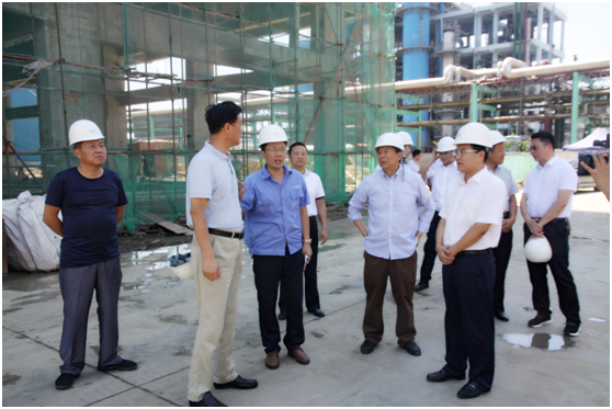 胡主任一行在公司董事长张兆振、总经理于涛的陪同下,冒着酷暑、顶着炎炎烈日来到60万吨/年合成氨智能升级节能技术改造项目建设工地进行实地视察。