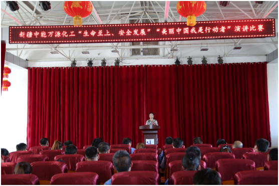 2018年6月21日17:00,新疆中能公司围绕“生命至上、安全发展,美丽中国我是行动者”的主题,在综合楼五楼大礼堂隆重举办“新疆中能公司第三届安全、环保演讲比赛”。公司总经理徐申、副总经理柳春等领导出席此次活动,郭飞、王子金、张秀志等9名管理干部担任本次比赛的评委,约100名员工现场观摩了比赛。