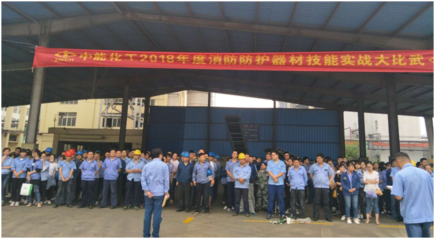 为贯彻执行《消防法》和《安全生产法》,加强“预防为主,防消结合” 、“安全第一,预防为主,综合治理”的消防方针和安全生产方针的宣传和落实,提升消防、防护应急技能,增强广大员工的消防、防护安全意识,提高员工的实战及灭火应急经验,6月20日,中能化工安监处、保卫处联合在2#尿素包装场地共同举办了中能化工2018年度消防防护器材技能实战大比武活动,本次活动是中能化工开展第十七个安全生产月的重要活动之一。