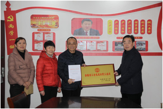 3月8日,临泉县总工会党组书记、副主席刘振兴,副主席李丽为公司送来“安徽省工会女职工先进组织”奖牌和表彰文件。