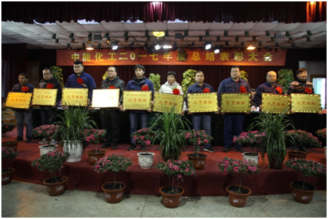 2018年2月1日下午2:30,中能化工2017年度工作总结表彰大会在综合五楼隆重召开。临泉县县委常委、副县长王耿亮同志,临泉县经信委主任史祥富同志应邀出席了会议,公司高管层、受到表彰的先进集体和先进个人代表以及优秀员工代表共300多人参加了大会,大会由公司总经理于涛同志主持。