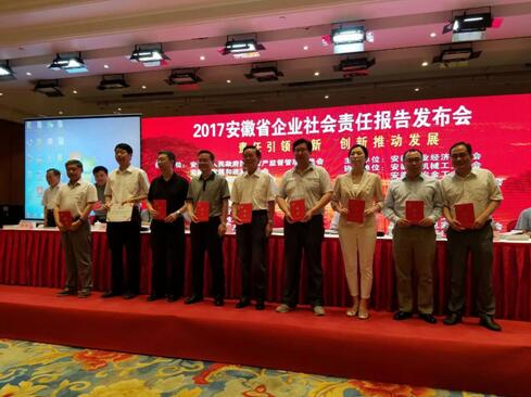 责任引领创新,创新推动发展。2017安徽省企业社会责任报告发布会于7月19日在合肥举行。发布会上,安徽省工经联发布了《2017安徽省企业社会责任报告综合评估报告》和社会责任报告评级结果,并向相关企业颁发社会责任报告发布证书和最佳社会责任报告证书,向安徽省企业社会责任工作智库的第一批专家颁发了证书。