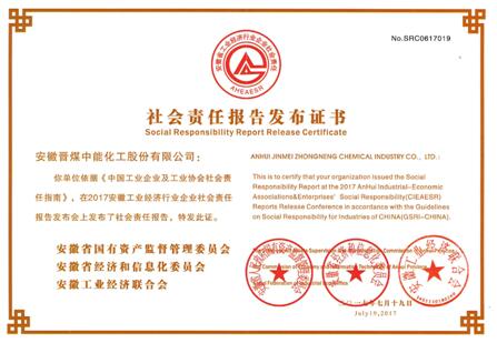 我公司参加本次发布会,这是公司连续五年发布社会责任报告。公司办公室刘坤同志被聘为安徽省企业社会责任工作智库第一批专家。