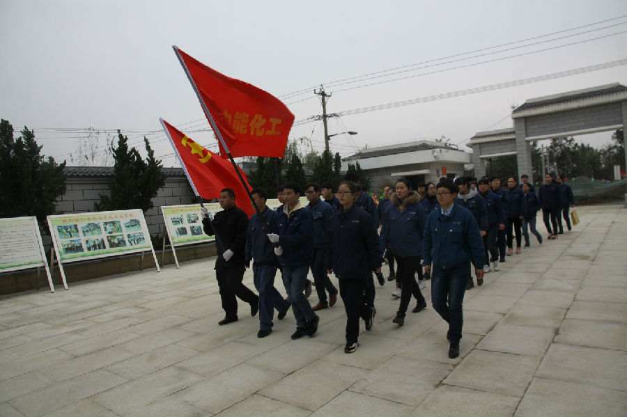 随后,一行人步行到达魏野畴烈士纪念馆。在公司团委和当地相关领导的组织下,全体团员在魏野畴烈士的塑像前举行了献花宣誓仪式。老集镇党委书记陈建军同志发表了讲话,他首先肯定了中能化工这些年的成绩和影响,并简要介绍了老集镇的基本情况,鼓励大家努力工作,奉献家乡。