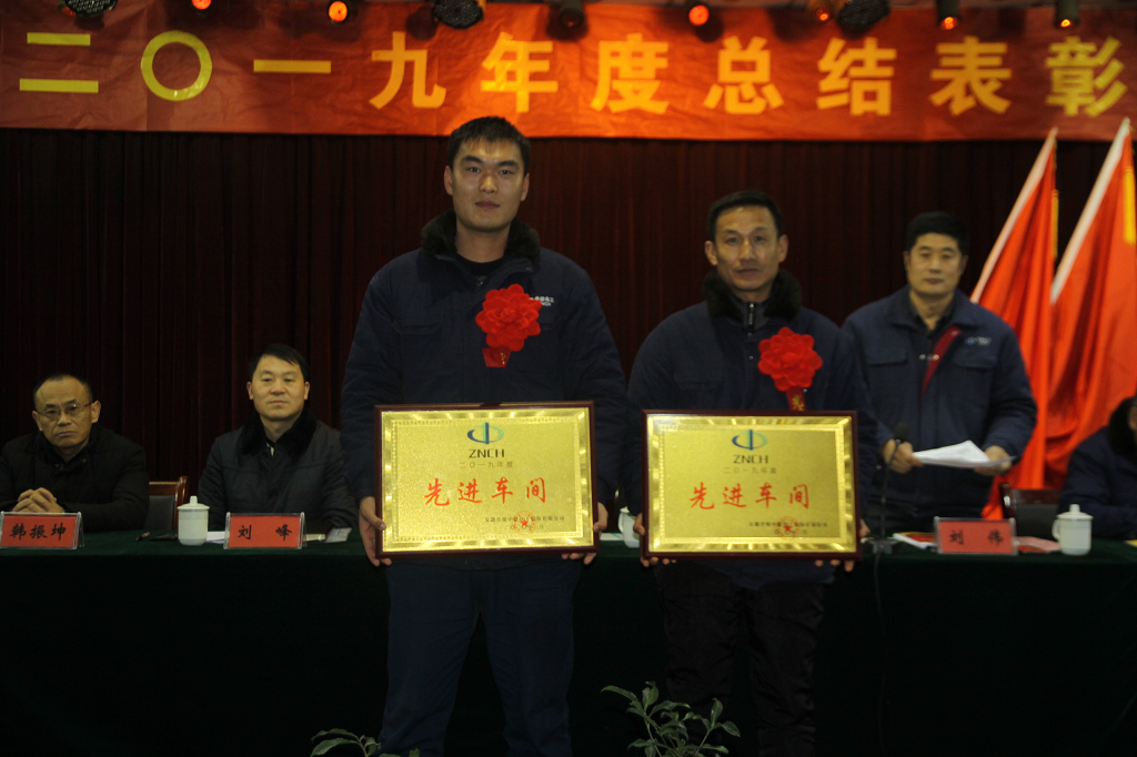 先进集体代表双氧水车间劳动模范宋伟和先进个人代表劳动模范肖俊山分别宣读了先进集体和先进个人倡议书。倡议广大员工情系中能、立足岗位、爱岗敬业,积极做好2020年的各项工作,为实现“三百愿景”而努力奋斗。