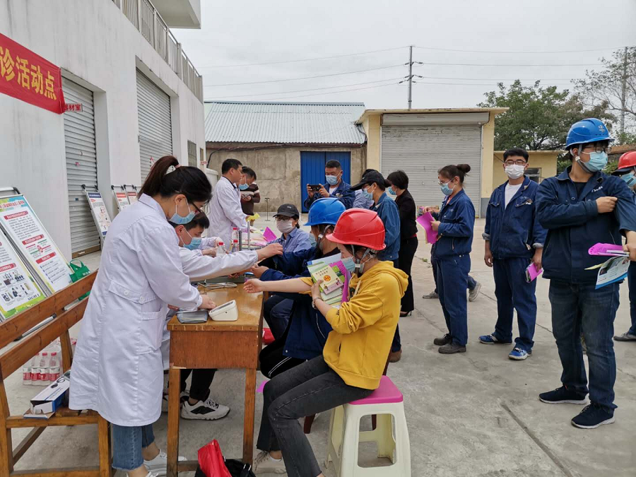 活动现场,县卫健委副主任齐红侠、县总工会副主席李莉、卫生监督执法局局长王伟、疾控应急股股长李春景等通过发放宣传资料、职业病知识讲解等向公司员工普及职业健康卫生知识。临泉县疾控中心、中医药科学研究所对现场100多名员工进行了义诊。
