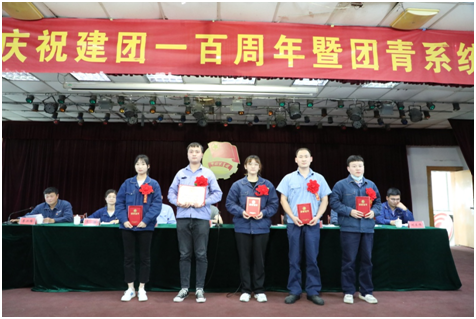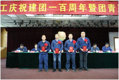 2022年5月3日下午3:00,中能化工“纪念五四运动103周年暨建团一百周年团青系统表彰大会”在综合楼五楼会议室拉开帷幕。公司党委副书记、总经理韩振坤,副总经理孟宪科,副总经理葛超伟等领导参加会议,团临泉县委副书记吴秋实同志应邀出席会议,优秀团员、青工代表近200余人参加了会议。公司团委副书记李兴隆主持会议。