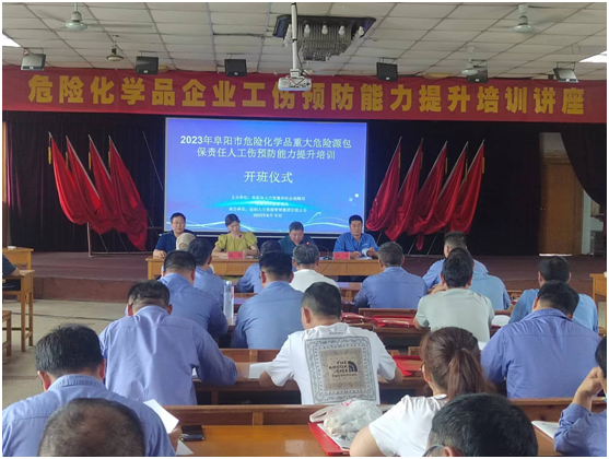 为进一步提高公司班组长、专职安全管理人员工伤预防能力和素养,促进企业安全生产,在阜阳市人社局、阜阳市应急管理局、中能化工、远创人力集团等多方机构精心筹备下,2023年8月9日下午14:30,2023年阜阳市危险化学品重大危险源包保责任人(班组长、专职安全管理人员)工伤预防能力提升培训班开班仪式在公司五楼会议室举行。阜阳人社局工伤科副主任牛军华,安徽晋煤中能化工股份有限公司党委书记刘伟,远创人力资源管理集团有限公司副总经理姚瑜出席开班仪式,人力资源处处长刘坤主持开班仪式。