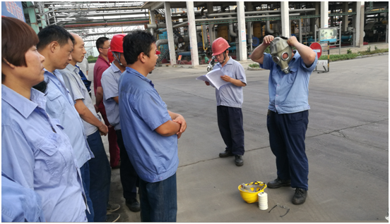 首先由安全员陈雷详细了介绍本次演练的课题和演练内容,随后讲解和亲自示范消防水带、过滤式防毒面具、干粉灭火器的具体使用方法和维护保养以及出现煤气中毒的正确施救和人工呼吸及心脏挤压等急救措施。
