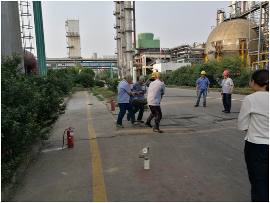 随后由安全员陈涛组织具体演练,演练内容分为消防水带的连接、出水灭火;干粉灭火器的正确灭火方法和出现中毒者施救人员佩戴过滤式防毒面具施救,人工呼吸和心脏挤压术等。这些内容都是造气日常工作中经常用到的技术,基本知识。演练人员个个热情高涨,操作熟练,得到围观人员的阵阵掌声。