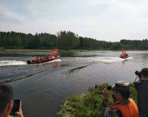 5月23日早上,临泉县人武部联合县直工委,县防汛办、县水务局、蓝天救援队和中能化工集团,组织民兵应急分队和民兵专业分队进行抗洪抢险训练,展开了堤坝险情处置、打桩封堵、水上搜救、水下潜水救人等多课目内容训练。
