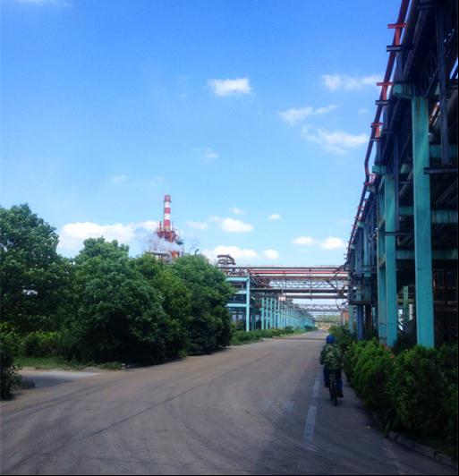 中能竟然如斯美丽。天空一碧如洗,变幻莫测的云彩时而涌动,时而驻足,有意无意间为天空做出装饰,一眼望去,都是湛蓝,似乎给这个冷冷的深秋增添了一丝暖暖的幸福。那洁白的云朵,依偎在高耸的烟囱周围,袅袅升起的蒸汽,为中能平添了许多的幻境。